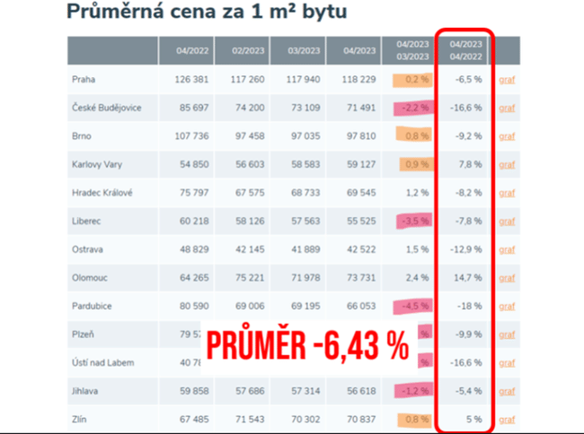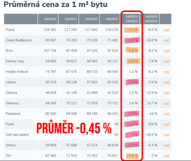V tuto chvíli cena nemovitosti klesá pouze v 7 ze 13 měst v ČR. Po odečtení inflace již klesá pouze v 10 ze 13 měst v ČR. Především se ale dostáváme na průměrný pokles 0,45 % meziměsíčně. To je nejmenší pokles, který zde máme od května roku 2020. Klesání začíná čím dál více zpomalovat a dle mého názoru se klesání velmi brzy přelomí právě do růstu. V tu chvíli začnou možná růst i úrokové sazby a to bude podle mě jednoznačný start růstu nemovitostního trhu.