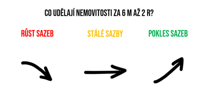 Zatímco předtím úrokové sazby rostly, což znamenalo, že za 6 měsíců až 2 roky budou ceny nemovitostí klesat.