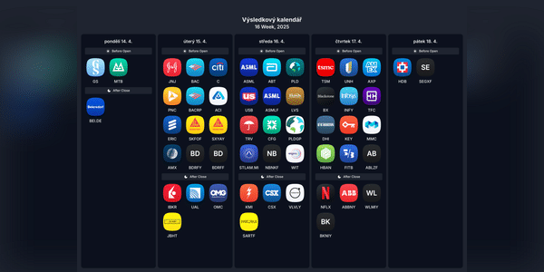 Jelikož se nám rozjíždí výsledková sezóna tak bude co sledovat, už minulý týden nám ji hezky odstartovala banka $JPM, která představila krásné výsledky nad očekávání analytiků. Uvidíme, co nám ukážou banky tento týden a k nim se také přidají dva technologičtí giganti společně s největší streamovací platformou na světě. Zde...