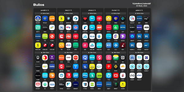 Mě budou zajímat výsledky $NVO, $PFE a $O. Zatím je ta výsledková sezóna docela pozitivní, tak to snad bude pokračovat.