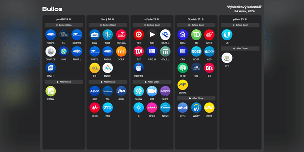 Sledujte dění na trzích, protože tento týden je nabitý zásadními událostmi, které mohou přinést zajímavé příležitosti i výzvy. Hlavním terčem pozornosti bude tento týden určitě společnost Nvidia, která oznámí své výsledky a tím ovlivní hlavně technologický trh.
