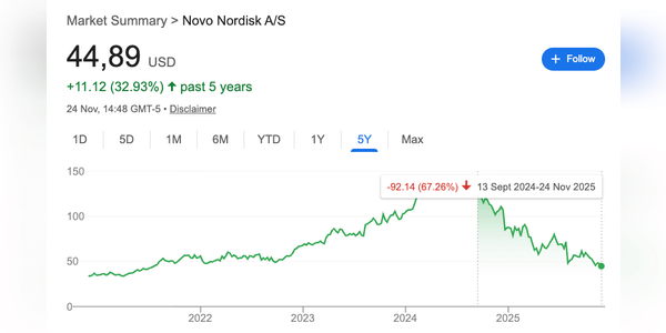 Pokud by to byl třeba Google $GOOG, řekl bych, že víc takových zpráv, které pošlou cenu akcií dolů, bych chtěl více. U $NVO už to ale snad stačilo😅